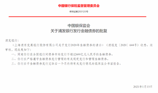 浦发银行:发行不超500亿元永续债获银保监会批准