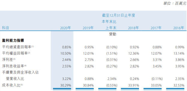 盈利能力方面,2020年,贵州银行的平均总资产回报率为0.85%,比上年同期下降0.10个百分点;平均权益回报率为10.50%,比上年同期下降1.51个百分点;净利差为2.44%,比上年同期下降0.31个百分点;净利息收益率为2.55%,比上年同期下降0.27个百分点。