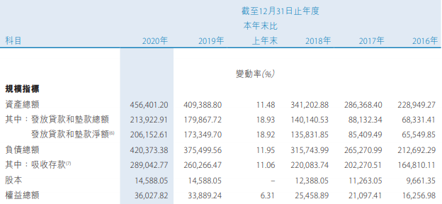 截至2020年末,贵州银行的资产总额为4564.01亿元,同比增长11.48%,其中发放贷款和垫款总额2139.23亿元,同比增长18.93%;负债总额为4203.73亿元,同比增长11.95%,其中吸收存款2890.43亿元,同比增长11.06%。
