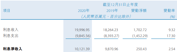 2020年,贵州银行的利息净收入为101.21亿元,同比增长2.54%。其中,利息收入为199.97亿元,同比增长9.32%;利息支出为98.46亿元,同比增长17.30%。