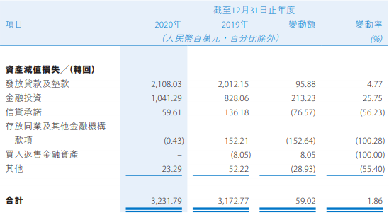 2020年度,贵州银行资产减值损失为32.32亿元,同比增加0.59亿元,增幅1.86%。其中,发放贷款及垫款减值损失为21.08亿元,同比增长4.77%;金融投资减值损失为10.41亿元,同比增长25.75%。