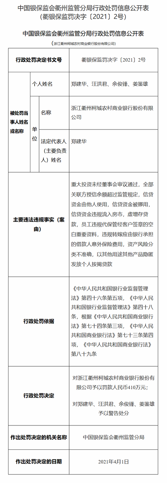 浙江庆元泰隆村镇银行违法被罚