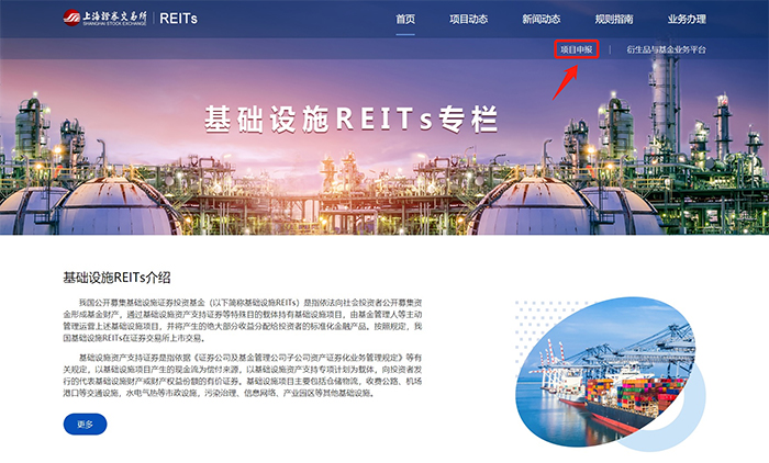 图为上交所基础设施公募REITs审核系统项目申报入口