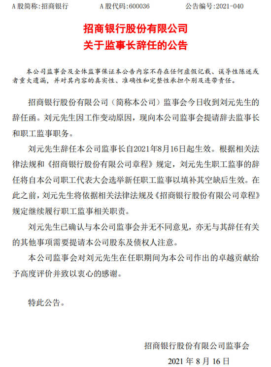 招商银行:温建国因工作变动原因辞去股东监事职务