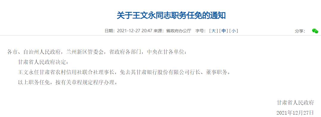 甘肃银行行长王锡真拟任省管企业党委书记、董事长