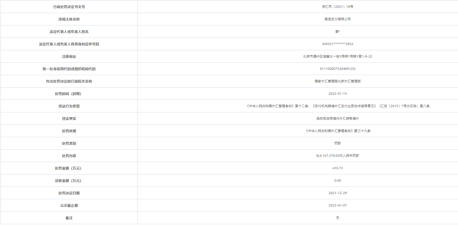 快捷通支付2宗违法被罚没851万 违反支付清算管理规定