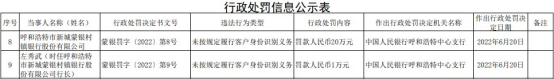 呼和浩特新城蒙银村镇银行违规被罚20万