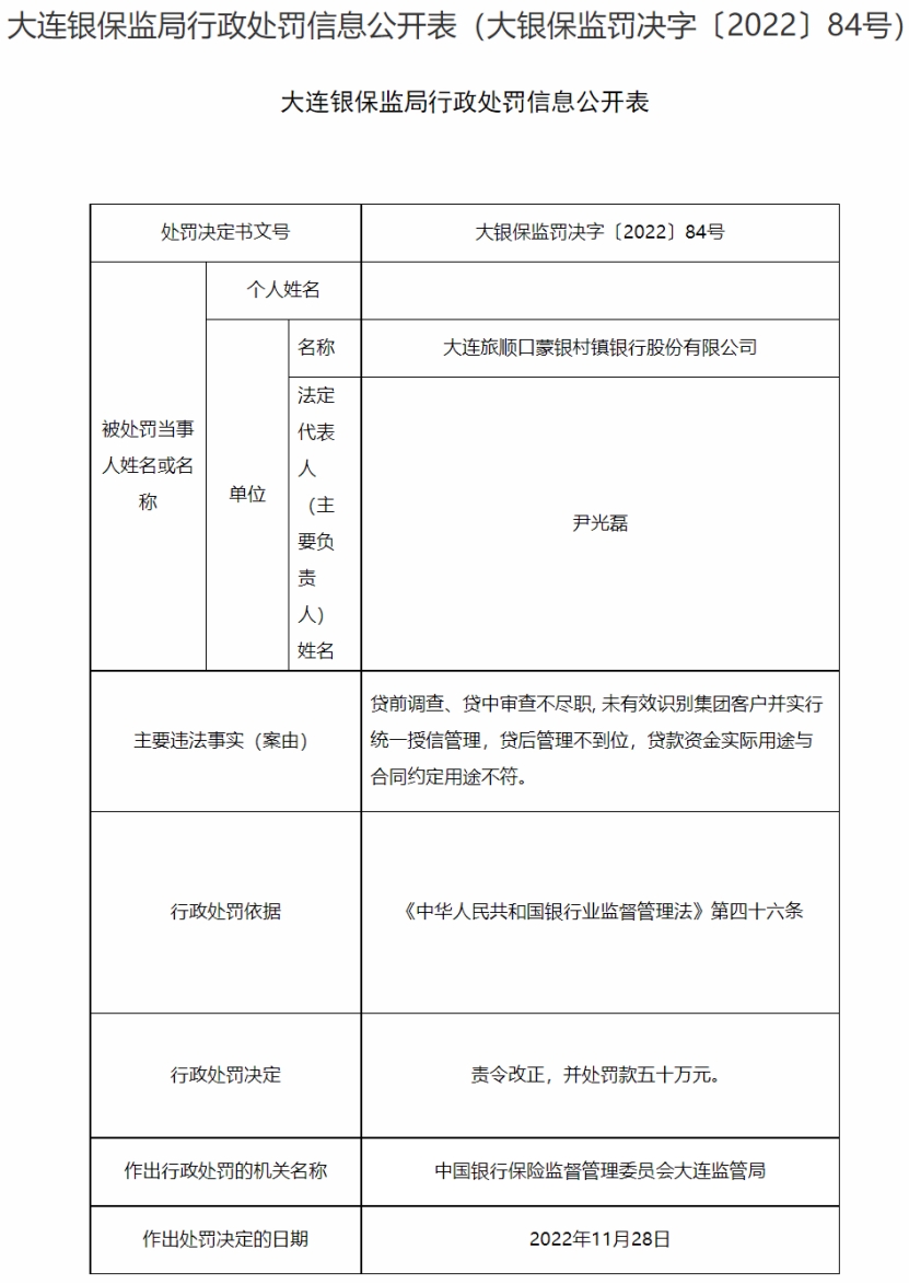 大连旅顺口蒙银村镇银行新行长获批