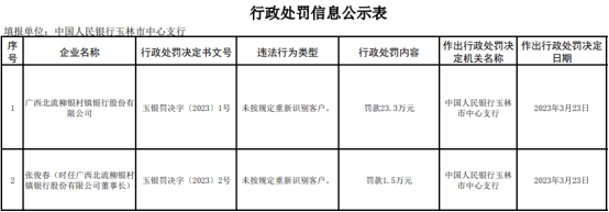 广西浦北国民村镇银行被罚
