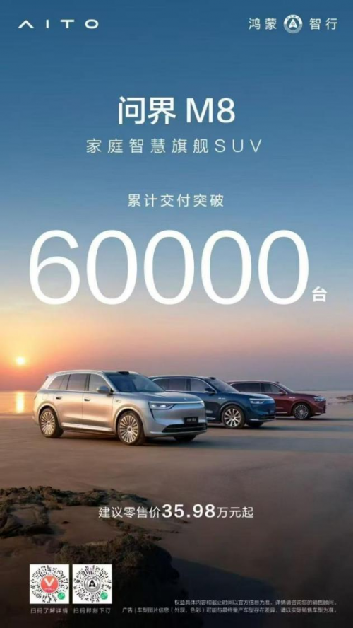 日前,问界M8累计交付量突破6万台,从40万级市场的突围到成为家庭用户的信赖之选,问界正以超越传统豪华品牌的服务体验,重新定义新豪华服务标杆。