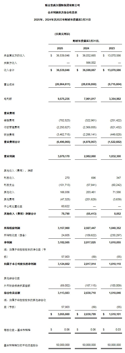 综上所述,联合索威尔在截至3 月 31 日的2025财年及2024财年,分别实现毛利额 958 万美元和 796 万美元,毛利率分别为 26% 和 22%。整体毛利率上升约 4 个百分点,主要源于2025财年毛利率较高的软件销售收入的增长。