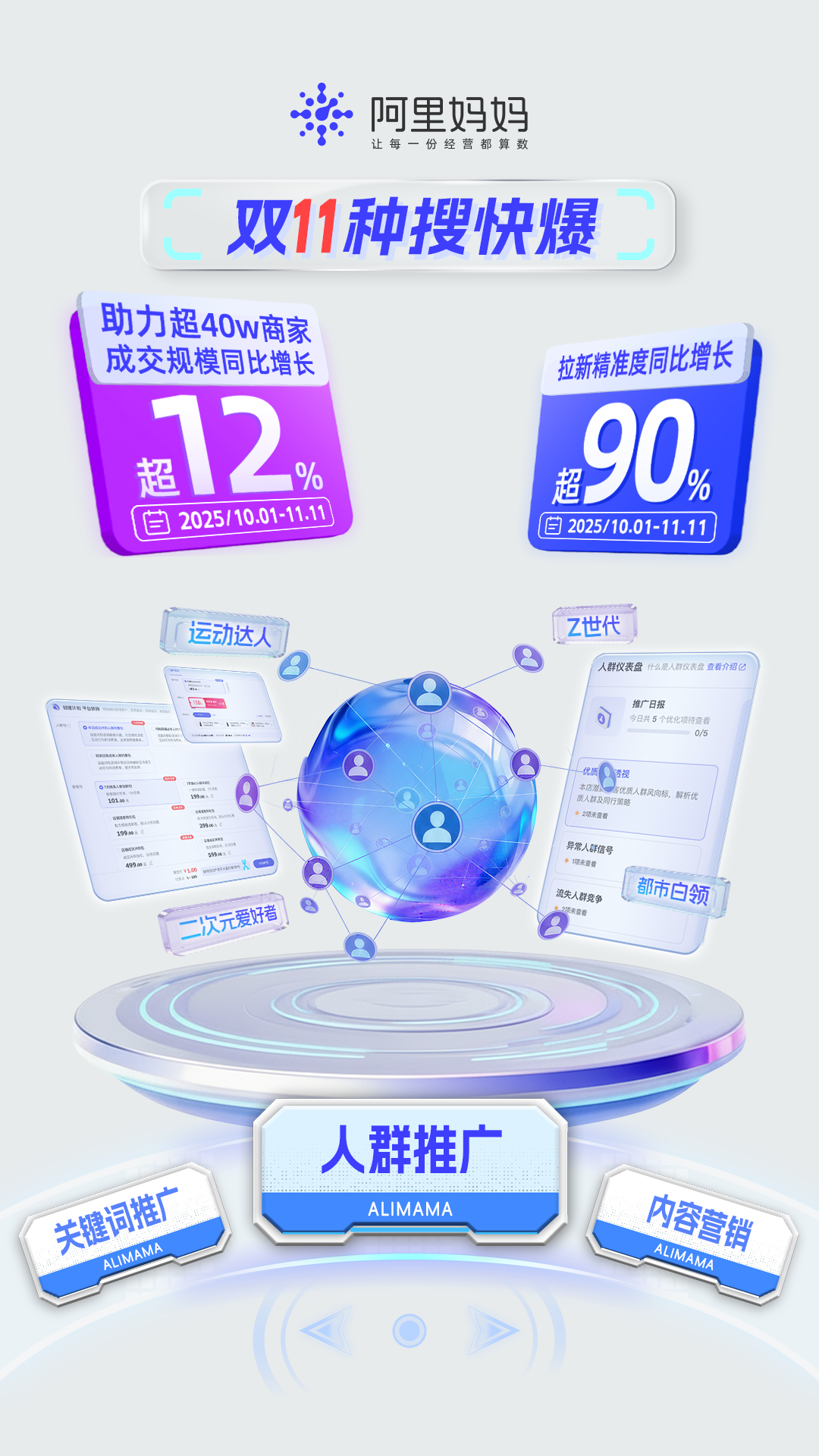 人群推广助力超40万商家成交规模同比增长超12%,拉新精准度同比增长超90%