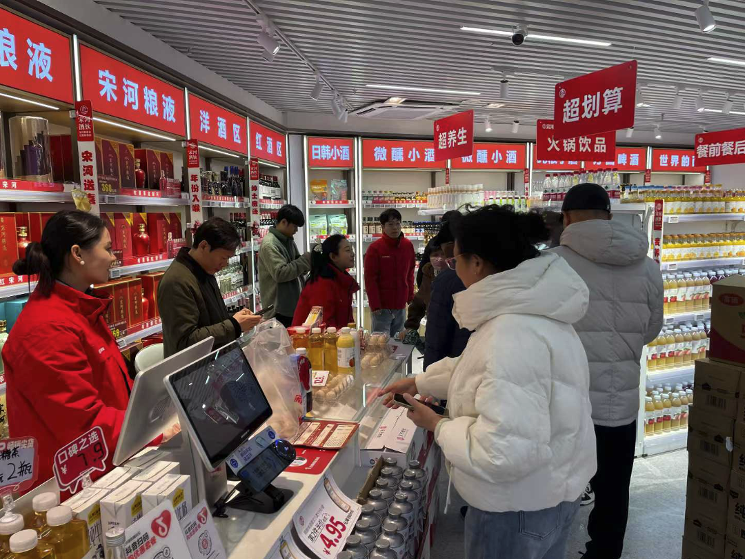 12月12日郑州初雪时节,位于郑州市金水区的宋河酒饮到家首店正式对外试营业,上午9点刚开门,周边居民冒雪纷纷涌入,试营业的“冷启动”被周边顾客的热情瞬间点燃了。