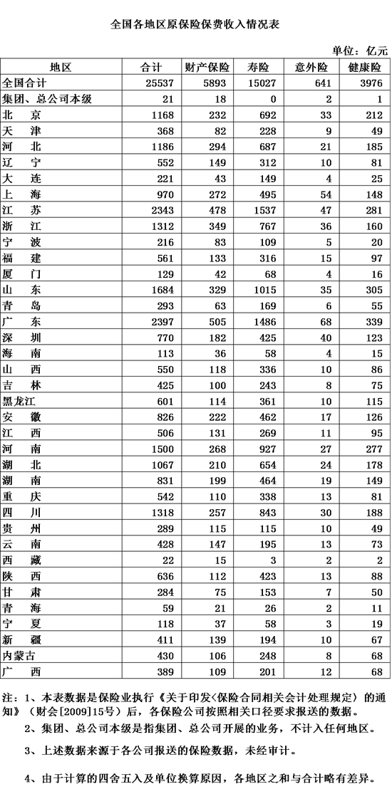 保险业上半年原保险保费收入25537亿