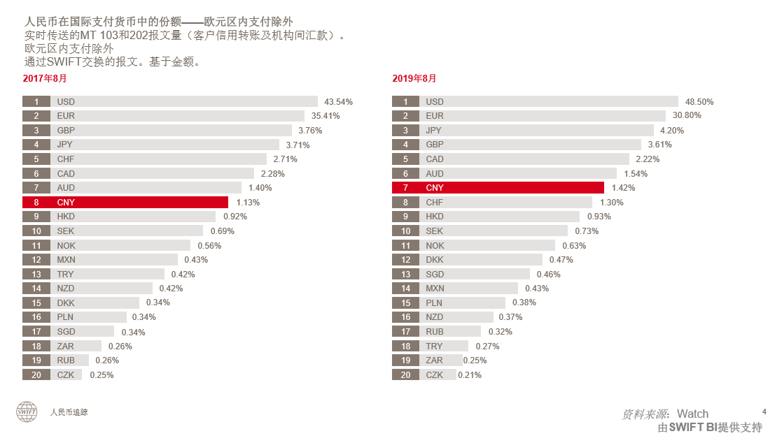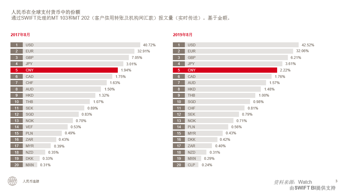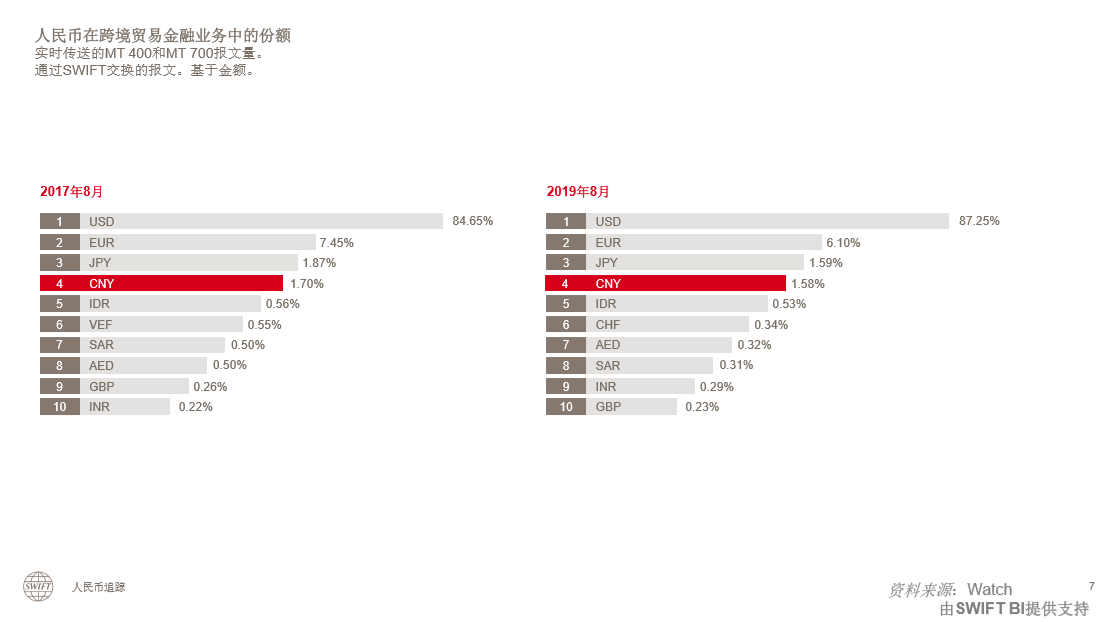 SWIFT:6月人民币为国际支付第五大活跃货币