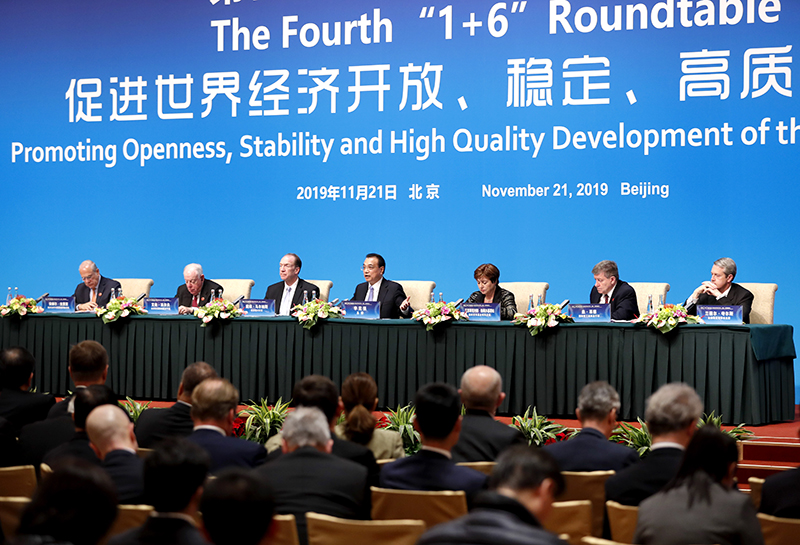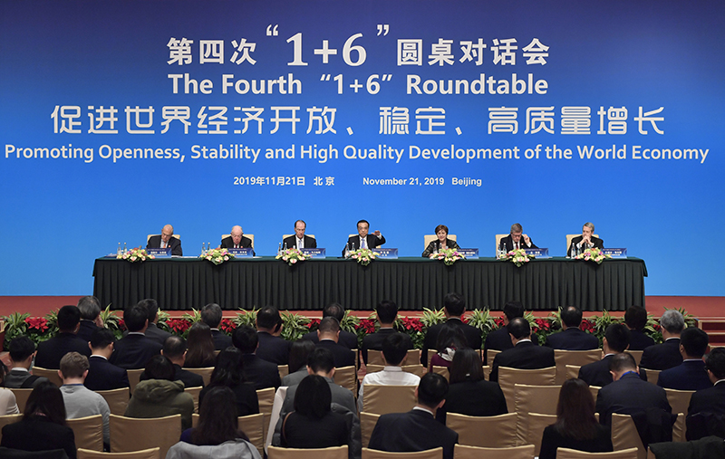 李克强同主要国际经济金融机构负责人举行第四次“1+6”圆桌对话会