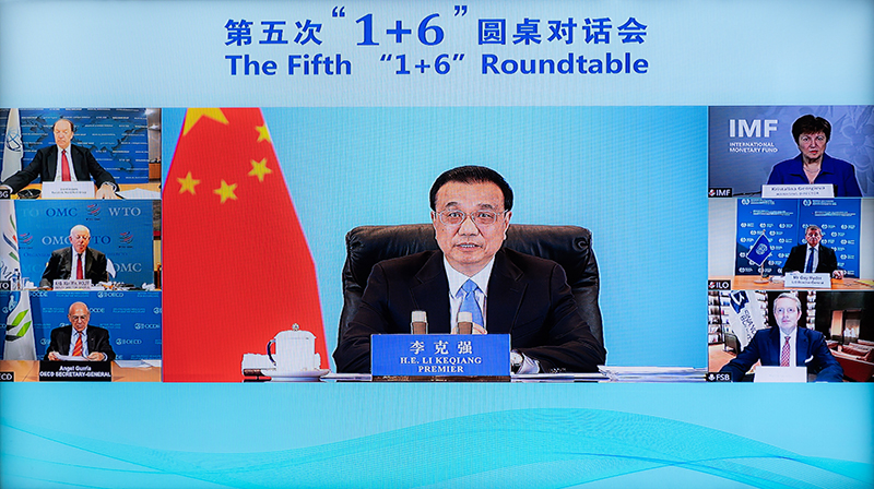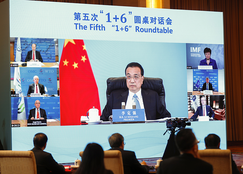 李克强同主要国际经济金融机构负责人举行第四次“1+6”圆桌对话会
