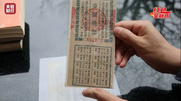记者又辗转找到了横峰县的收藏爱好者龚奇龙、左玮夫妇。左女士的父亲左进亮,生前热爱红色收藏,正是在他的带动下,一大批闽浙赣革命根据地时期的红色文物得以收藏和保护。他们的很多藏品都是当时金融创新的产物。在这些藏品中,一张1933年闽浙赣苏区发行的股票引起了记者的兴趣,龚奇龙表示,这是红色政权正式发行的第一只银行股票。