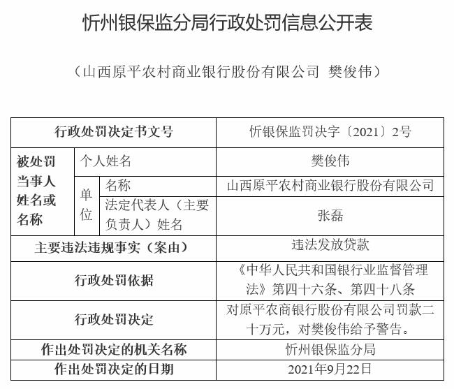 阳高县兴都村镇银行违规被罚