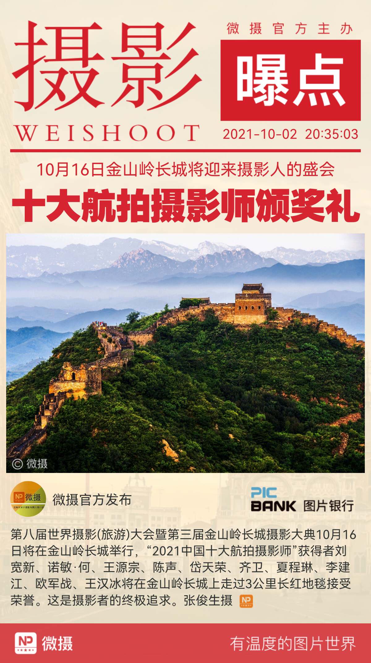 中国十大航拍摄影家将齐聚金山岭长城接受荣誉