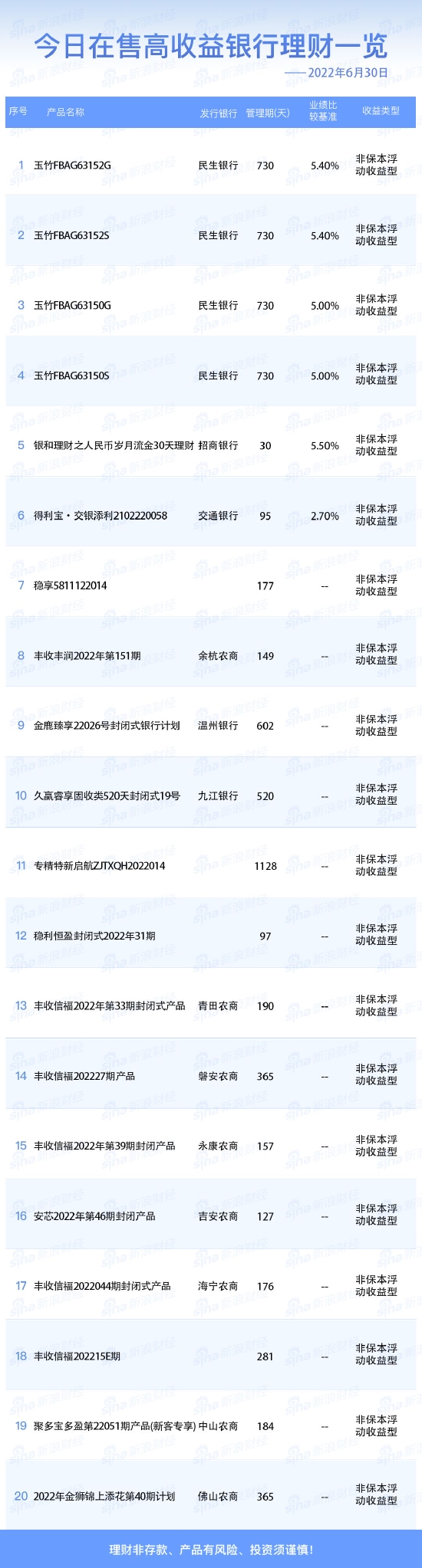 银行30日在售高收益理财产品一览