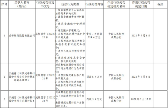 成都农商银行六宗违法被罚1100万 违规开展非标业务等