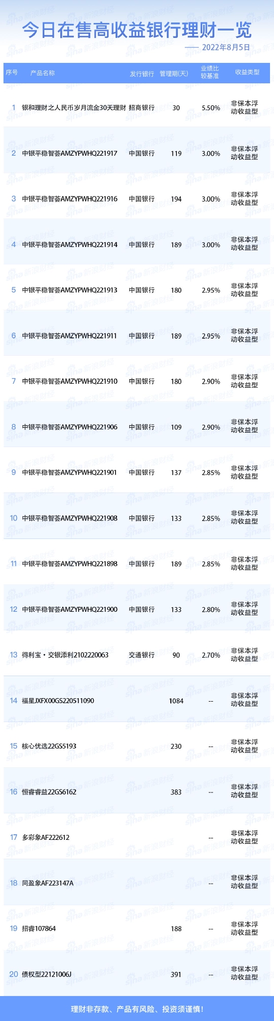 银行30日在售高收益理财产品一览