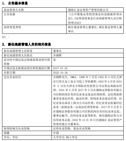 渤海汇金证券资管合规总监徐海军离任
