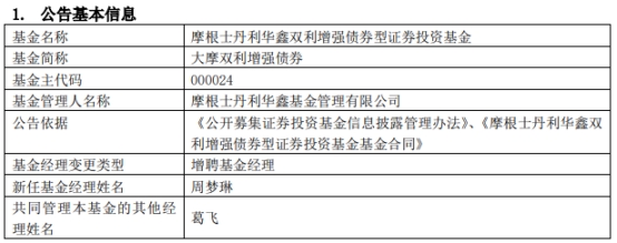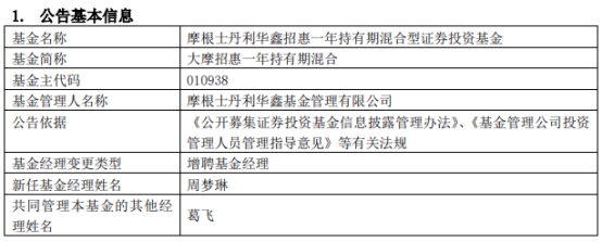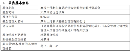 摩根士丹利华鑫基金2只基金增聘基金经理陈修竹