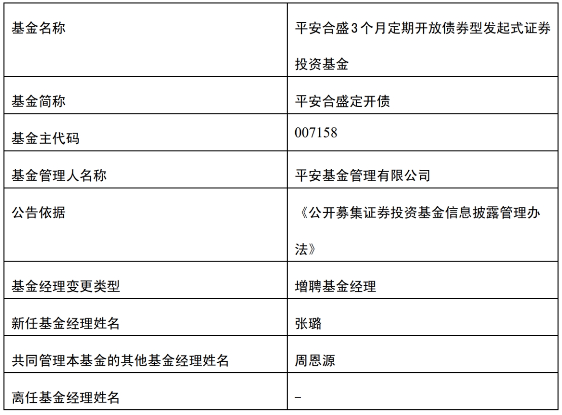 平安惠信3个月定开债增聘基金经理罗薇