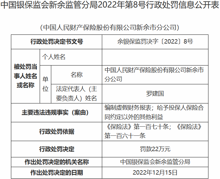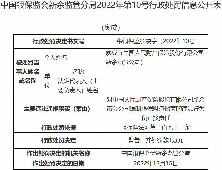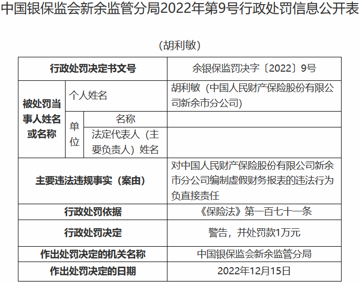 人保财险遭银保监会通报
