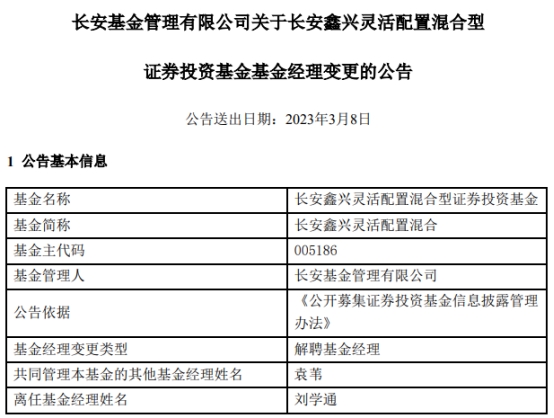 孟楠离任长安泓润纯债债券与长安泓沣中短债债券