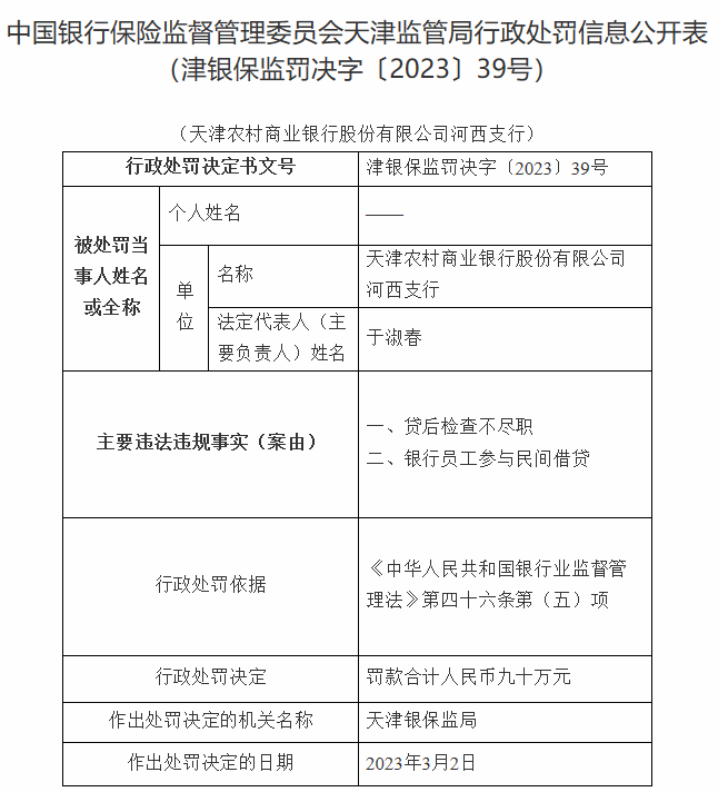 天津农商行内控管理不到位 原营业部老总被终身禁业
