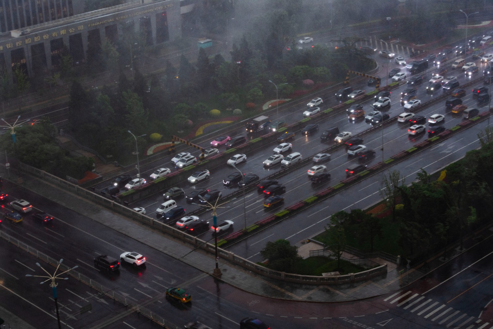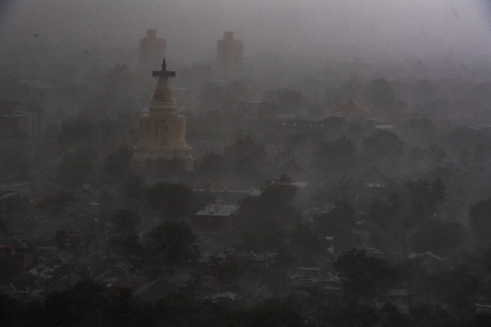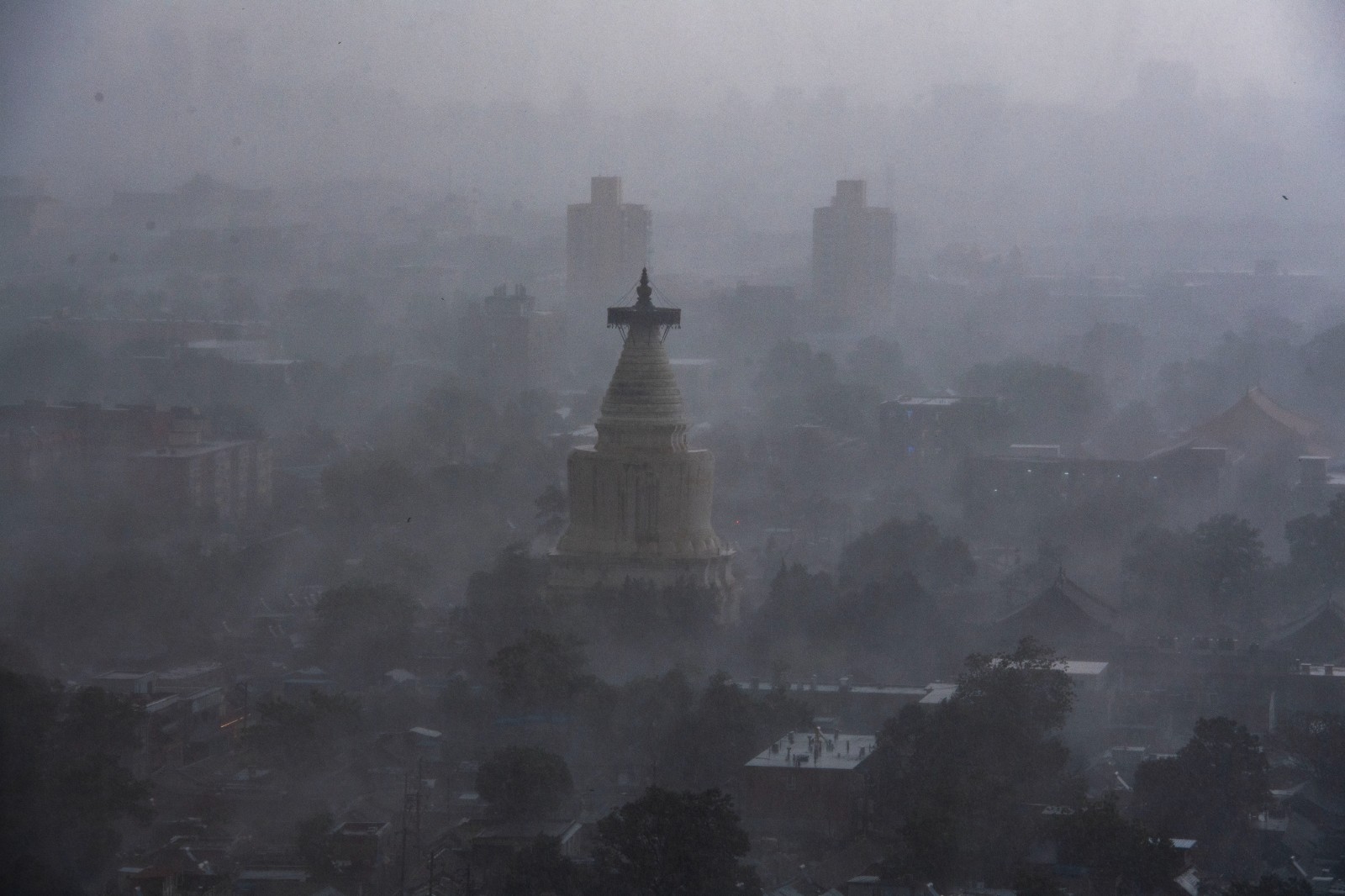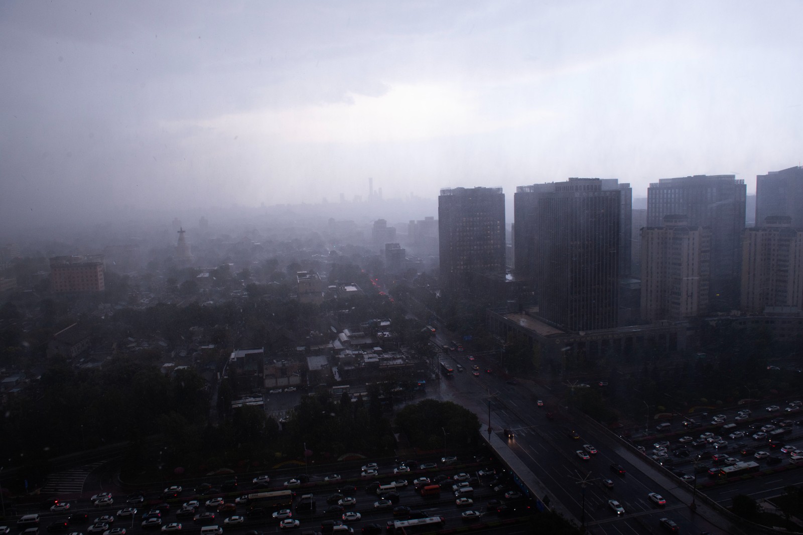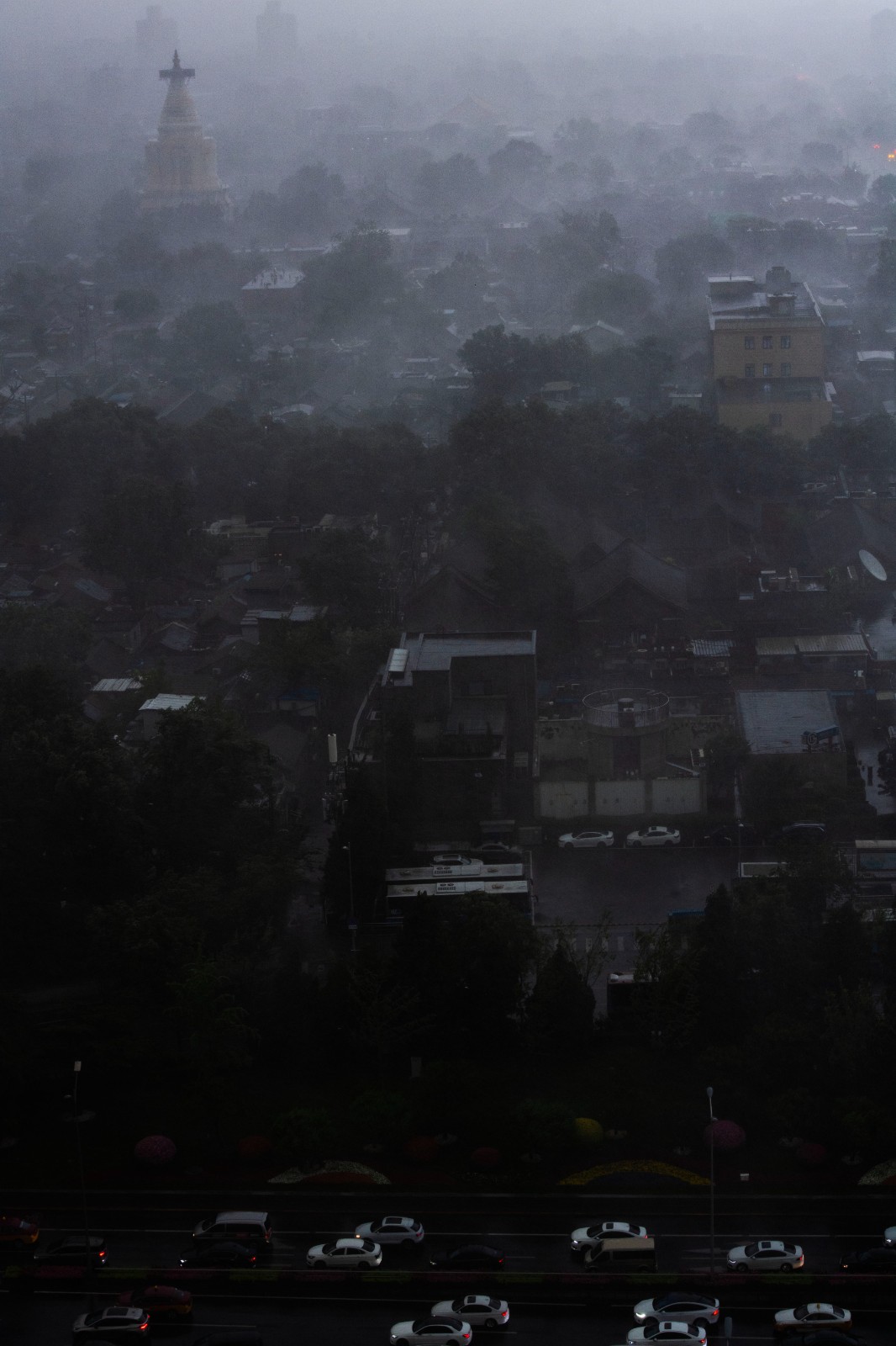 第一场春雨和雷电降临后,北京勾勒出一道道金色光影