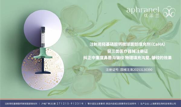 上海摩漾生物成立于2018年,拥有完全自主专利,是国际领先的高科技、专精特新企业。旗下aphranel优法兰™作为中国人自主研发一款高端注射用羟基磷酸钙微球面部填充剂,是首款中国NMPA批准的医疗美容适应症三类医疗器械注册认证产品,不仅同时斩获了欧盟 MD、五国 MDSAP证书、墨西哥COFEPRIS审核后的产品注册证等国际权威认证,更是全球首个实现 CaHA 微球粒径、孔径及降解速率精准调控,并实现自主研发、生产与销售的头部医美品牌之一。摩漾生物的专利CaHA材料凭借其安全、可完全降解、效果自然深受全球专家与求美者的信任与喜爱。秉承"让医美回归医疗本真"的使命,始终坚持创新科技带动产品应用,为医生和消费者提供安全优质的产品以及严谨专业的服务。