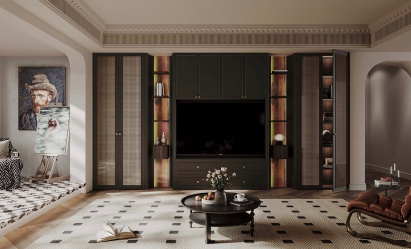 Lamett乐迈石晶大家居空间耀·漫影系列,将木的温润和藤编的粗粝糅合,尽显中古风之美