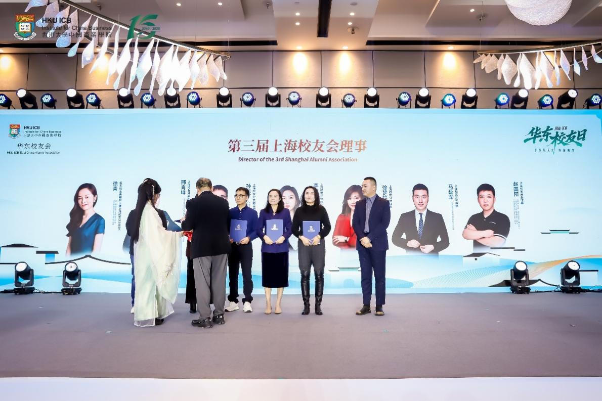 论坛结束后,校友们移步至吴越宫参加华东校友会换届晚宴。晚宴上,新一届理事会成员正式亮相,校友们举杯畅叙、交流合作。